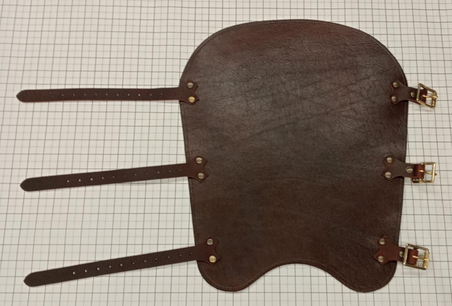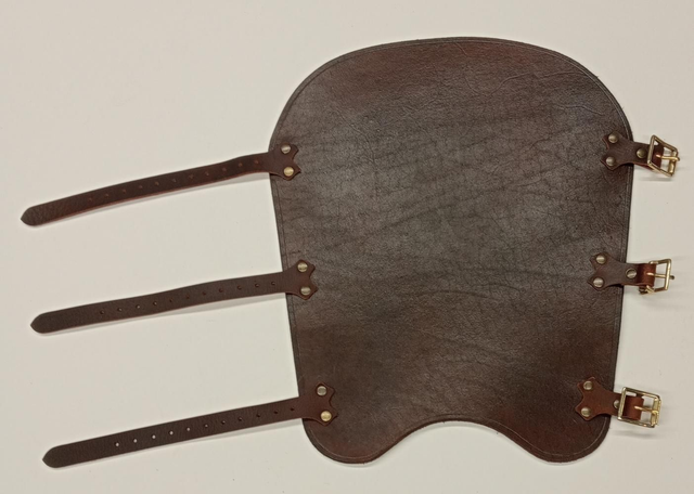 Our Leg Grieves are backed with sheepskin as this helps reduce slippage and aids in comfort. However, we offer a cheaper option without sheepskin so the back of the leather is exposed. The maximum circumference of the strap are: Top 50cm, Middle 47cm, bottom 44cm. Distance between each strap is 11.1cm. Colours may vary due to the natural pigment of leather. Due to leather being a natural material sometimes these skins have scars and brands, we try to keep our waste to the minimum this means that sometimes they become part of the product. Thread colour may vary with every different batch and is also due to these containing natural materials.